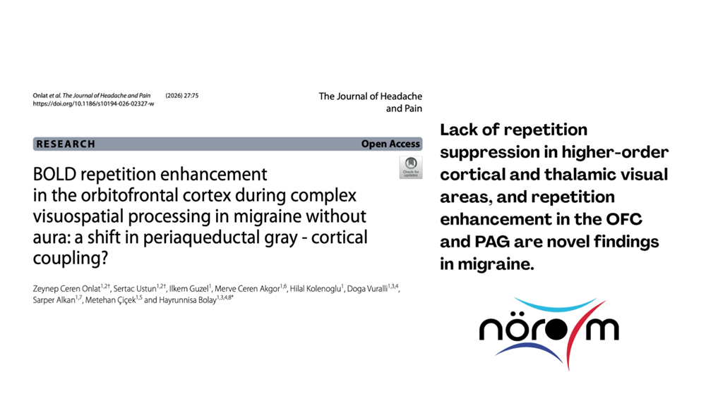 The study, conducted within NÖROM with contributions from researchers at Ankara University, was published in The Journal of Headache and Pain, one of the leading journals in the field of neuroscience.