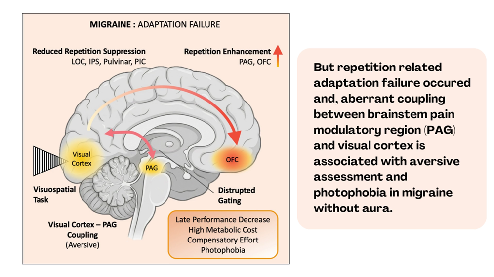 “In a normal human brain, when a repeated stimulus occurs, the brain reduces its response. However, the migraine brain does the opposite and gradually increases its response.” She emphasized that this increase occurs not in the back of the brain where visual processing takes place, but in the orbitofrontal region at the very front of the brain, which is a higher-level control center. She added: “This region is the higher-order control center of vision and also assigns harmful, beneficial, or emotional value to incoming stimuli.”